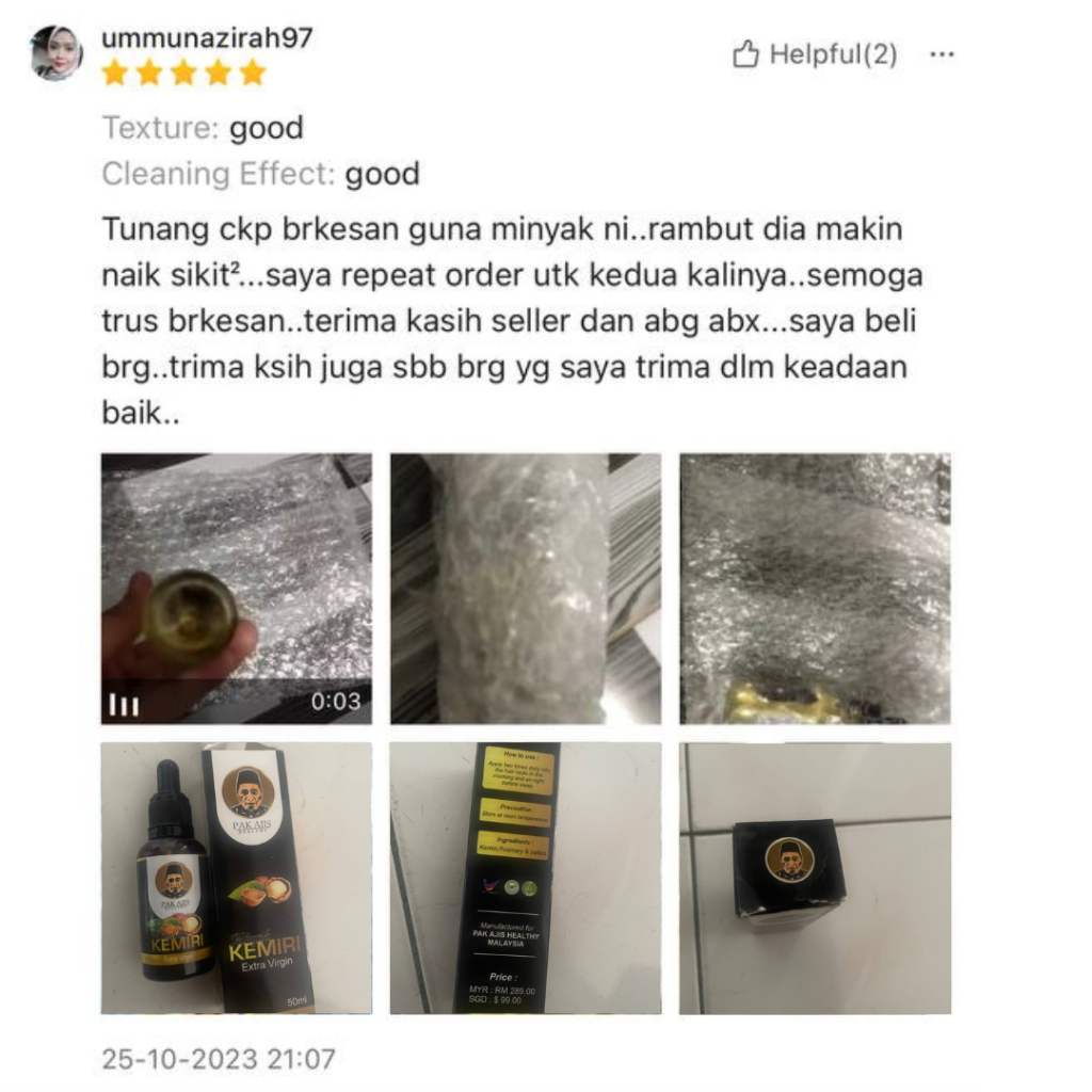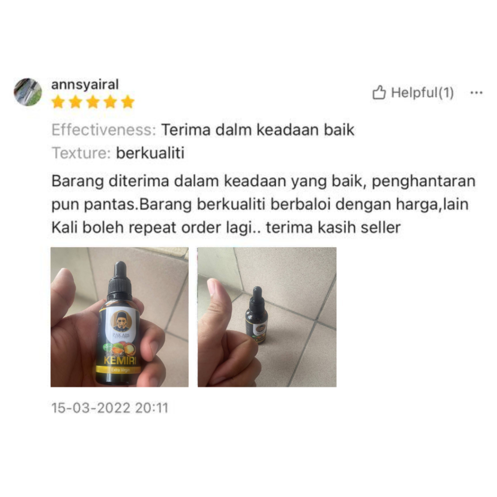 *PENAFIAN: Keberkesanan produk ini bergantung kepada kesesuaian individu. Setiap hasil dari penggunaan adalah berbeza bagi setiap individu. Produk ini akan memberi kesan terbaik sekiranya pengguna mengamalkan dengan cara betul berdasarkan banyak testimoni yang diperolehi. Kita berikhtiar, tuhan yang menyembuhkan.